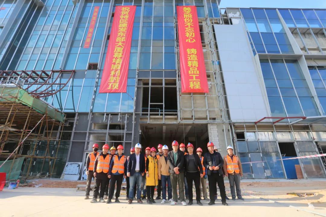 2021年1月16日,美芝股份承接的特區(qū)建發(fā)·東部大廈幕墻正式封頂,項目現(xiàn)場舉行了簡單而熱烈的封頂儀式。此次幕墻的順利封頂,標志著深圳市深汕特別合作區(qū)(以下簡:深汕特別合作區(qū))第一座集總部辦公和商業(yè)商務(wù)配套為一體的超高層綜合體建筑外立面形象工程完美收官,刷新了深汕特別合作區(qū)幕墻天際線,為合作區(qū)建設(shè)增光添彩。