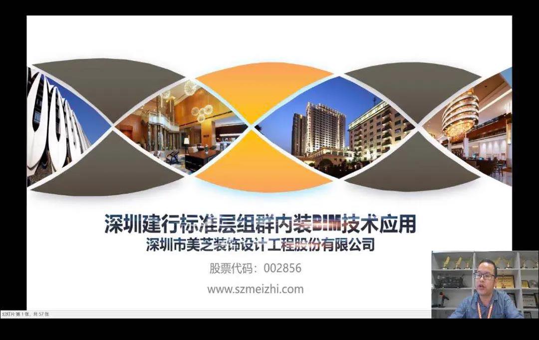 2020年10月15日,美芝股份研究院副院長廖世剖先生應(yīng)邀參加由中國建筑裝飾協(xié)會工業(yè)和信息化分會、中國建筑裝飾知行學(xué)院聯(lián)合主辦的數(shù)字裝飾線上直播,分享題為《深圳建行標準層組群內(nèi)裝BIM應(yīng)用介紹》。